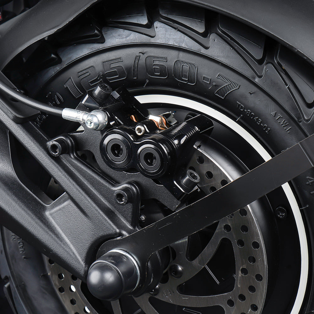 Full-Spec Braking, Finally Here: Daytona integrates DOT-approved fluid lines with 4-piston hydraulic calipers—delivering stronger bite, better control, and superior braking symmetry. It’s the braking spec you expect on a superbike, now standard on your scooter.