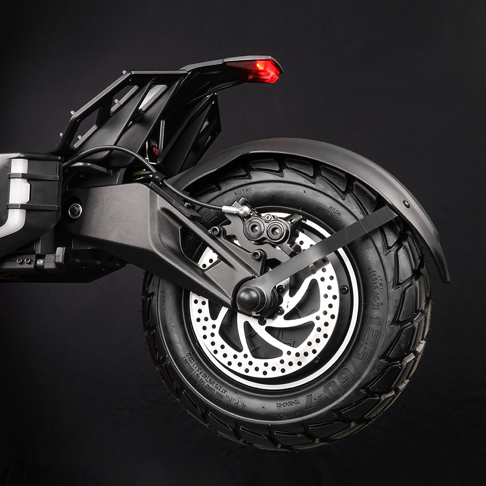 ⬆️ World's First Reverse Finger Throttle - Experience comfort like never before when accelerating at 70mph. 🚀 Top Speed: 70 MPH: Push limits and dominate any terrain. 🔋 Up to 51 Mile Range: Go the distance with 51 miles. 🌧️ All-Weather Ready: IPX5 - Water rating. 🛞 Superior Traction: 13-inch Tubeless with Self-Sealing Gel. 🚦 Perfect Geometry: Flawlessly engineered rake angle + center of gravity. 🔒 Adjustable Suspension: Choose your preferred preload and dampening. 📱 Juicy 13" Tires: Obtain maximum grip with large 13" tires. 🛑 Motorcycle Grade DOT Brakes: Come to a stop in time with ultimate braking precision. ⚡ Roadster Caliber Controllers: Achieve an iron fist level of control over your acceleration, brakes and power. Designed in USA.